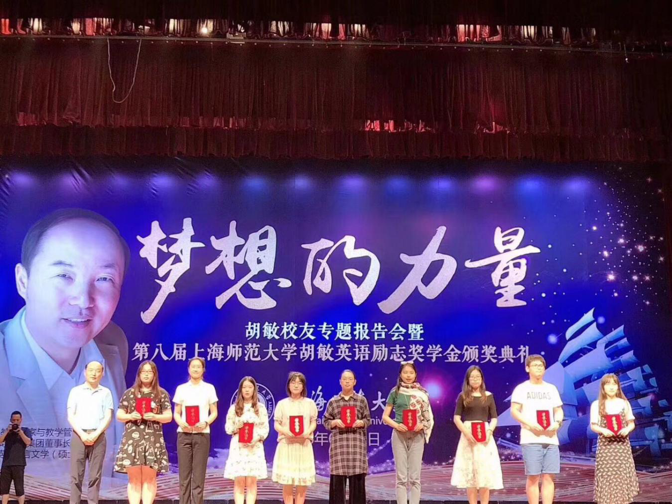2018年6月13日应上海师范大学邀请,新航道国际教育集团董事长兼CEO胡敏老师来沪参加纪念改革开放四十周年和2018毕业季《成长有约》“家国情,师大梦”专题活动,与汪天云、洪耀伟、傅欣、张庆庆等50、60、70、80、90年代校友代表同台,专门为2018届毕业生带来《你的格局,就是你的未来》专题分享!胡敏老师认为英语教育必须为学生走向世界做好准备,培养出来的人才必须具备全球胜任力。在这个格局层面上,英语能力不再是一种品,而是一种必需品,你要用英语去了解世界,用英语去闯世界,用英语去创世界。晚上在上师大奉贤校区大剧院举行上海师范大学第八届胡敏英语励志奖学金颁奖典礼暨“梦想的力量”千人演讲,在线直播吸引一百多万人围观。胡敏奖学金设立八年来一共有264名同学获奖!师道长青,饮水思源,一路走来,一路感恩,三十年如一。胡敏老师祝愿母校上海师大事业兴旺,祝福学弟学妹们前程远大!